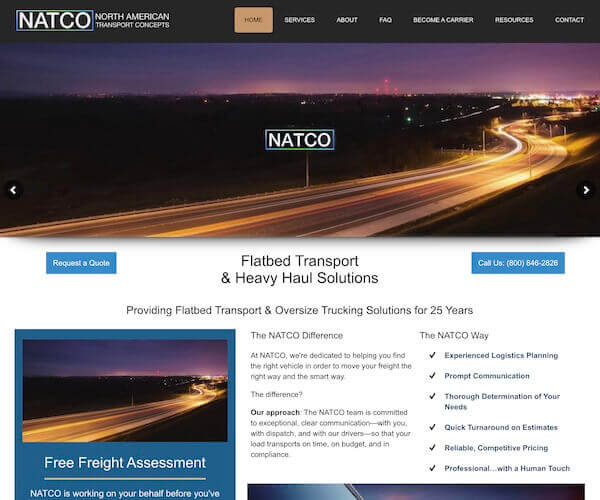 - The Challenge- Headquartered in Arlington, TX, North American Transport Concepts was an innovative third-party logistics company with a long-dormant website. NATCO contracted with us to replatform its web presence and help drive business to its door.
